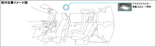 プラズマクラスター搭載LEDルーフ照明 ※image photo●高濃度プラズマクラスター25000 LEDドームランプ付 天吊りタイプ●寸法 長さ192mm×幅130mm×高さ38mm(取付アタッチメント含む)●車内に浮遊するウイルスの働きを抑制、カビ菌・アレル物質を分解・除去します。